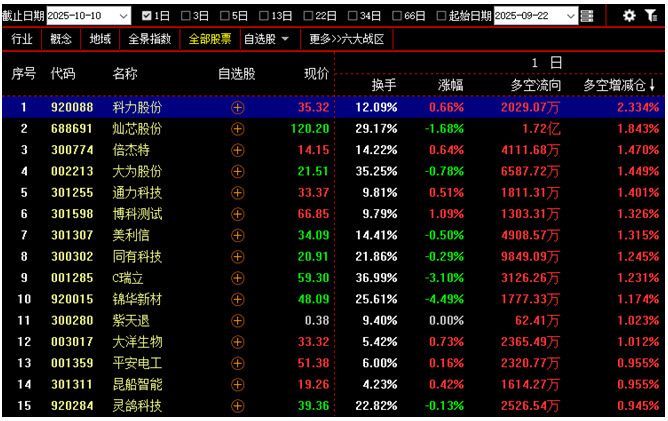 【今日多空资金增仓前200名中涨幅最小的15只个股】