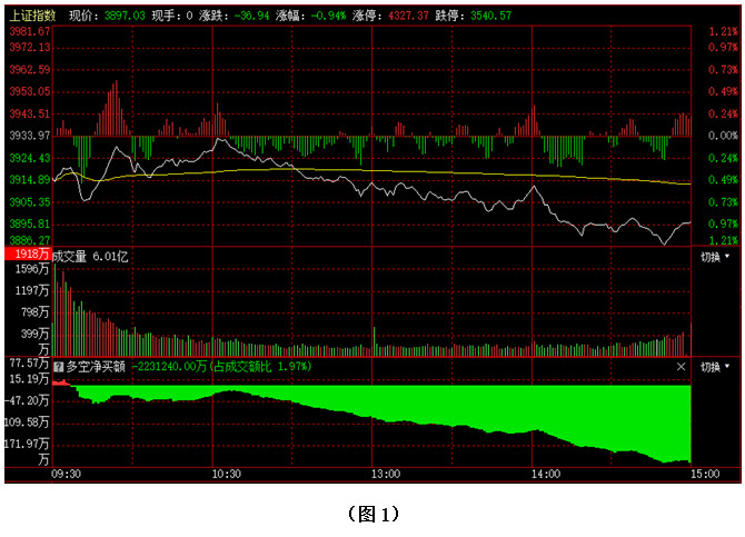 如图1所示,今日早间大盘低开,并快速回探至3910点下方,虽然市场在3900点附近获得支撑,且出现反弹,但由于多方上攻力度较弱,指数尚未回升至昨日收盘点位就再次遇阻回落,午后大盘更是持续下行,导致3900点整数关口再度失守,指数最终以3897点收盘。从下方的多空资金来看,早间开盘后,多方率先占据优势,但随着大盘下探,资金很快由红翻绿,并持续流出。可见今日多方未能延续昨日的强劲势头,空方则趁机施压,导致近期涨幅较大的科技类个股出现大面积回落,恐慌性杀跌迹象较为明显。在这种情况下,我们需要注意这种恐慌性杀跌到底会持续多久,如果只是一两天的短期行为,那么市场中的做多人气就不会受到严重打击,一旦行情出现企稳,多方资金就又会回流入场,推动大盘继续上行;但若是场内形成持续性恐慌,不仅资金会连续流出,而且随着恐慌的蔓延,资金的出逃力度还会越来越大,如此一来,行情就很难快速企稳,操作上则需以谨慎为主。