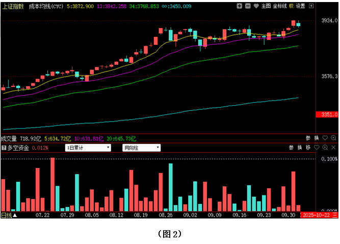 再看图2,今日大盘低开回探,收出阴线,3900点整数关口也随之得而复失。不过目前指数依然完全运行在5日成本均线上方,同时也仍处于8月26日之后震荡区间上沿的上方,所以市场短期强势格局并没有出现根本性改变。从下方的多空资金来看,今日多空资金为流入状态,虽然资金流入量明显小于昨日,但资金的连续进场表明当前市场短期主动权仍掌控在多方手中。故此只要空方无法连续大幅施压,大盘就不会重新进入到8月26日之后震荡区间的内部,后市则有望依托着5日成本均线支撑继续震荡上行。建议大家在控制好仓位的同时,一方面要密切关注场内多空资金的进出情况,另一方面则可积极优选个股,锁定目标,一旦多方资金快速进场,则可及时介入。